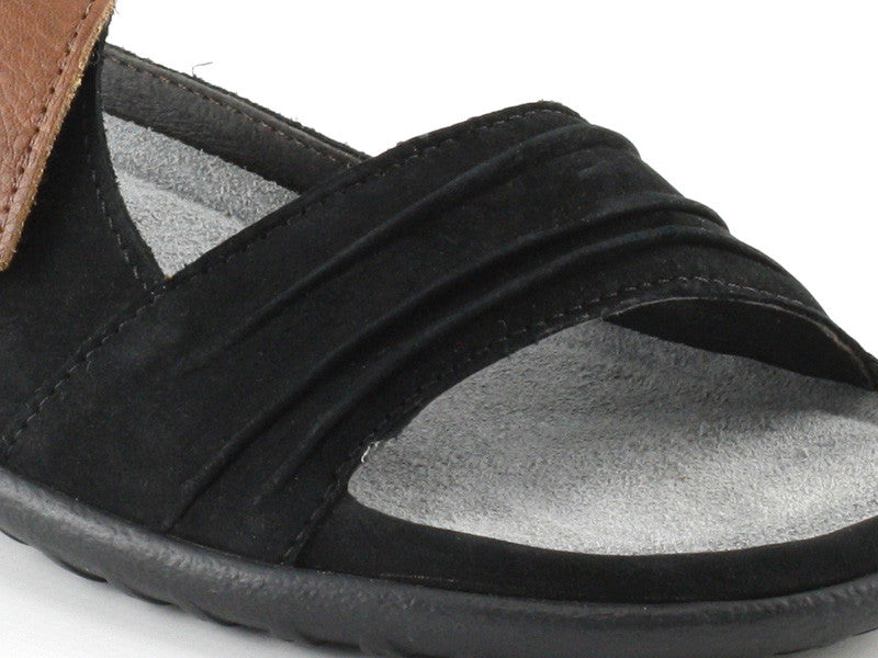 The uniquely designed Naot Papaki Women's Sandal features an insightfully placed cross over strap with a unique pleated toe design. It's sleek and sporty style makes this the perfect shoe for traveling or for those whose spend majority of the day on their feet. The Papaki's suede covered footbed, is made from cork and latex delivering incomparable support in each step that you take. It is designed to reduce foot stress and fatigue in the most sensitive areas of your feet. The 1" heel and gripped polyurethane outsole is lightweight and durable. Spruce up your summer footwear collection in the Naot Papaki Women's Sandal.Features