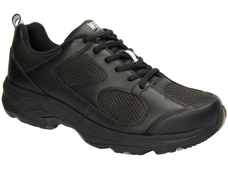 The Drew Lightning II Men's Athletic Walking Shoe offers unsurpassed foot and ankle support with Plus Fitting System (twice) removable depth for custom orthotics. The Lightning II features a breathable leather/mesh upper with lace-up closure. The soft fabric lining and foam-padded tongue and collar keep feet comfortable. The insole is removable and lined with Drilex and AEGIS Microbe Shield to keep active feet cool, dry, and odor free. This Drew shoe is also recommended for treating foot problems such as a high arch, flat feet, Metatarsalgia (ball-of-foot pain), plantar fasciitis (heel pain), bunions, hammertoes, and arthritis. TPU and tempered steel shank offer stability with a rocker bottom to propel the foot forward. This shoe is designed with an EVA midsole and lightweight rubber outsole. HCPCS Code A5500 for a diabetic shoe, the Drew Lightning II Men's Athletic Walking Shoe offers the ultimate in comfort and support, so you can move (almost) as quick as lightning.Features