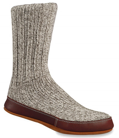 | Grey Ragg Wool Slipper Socks for men and women offer the best of both worlds: the warmth and coziness from wearing socks; plus the durable and long-lasting features of slippers. These socks are ideal for people that love to wear while relaxing at home. In fact, Acorn slipper socks are so comfortable that they've been worn by NASA astronauts during shuttle missions since June 27, 1982. What makes these slipper socks so unique is their design, which consists of a full grain leather sidewall and tough suede outsole - wearers will gain better protection at the bottom of their feet. No longer will men and women have to wear their tattered socks at home when meandering from room to room. All they need to do is slip on a pair of Acorn Slipper Socks to experience true comfort on earth.- Rib knit cuff for secure fit