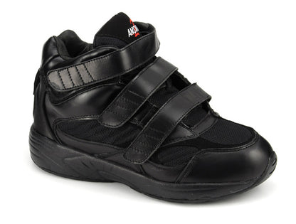Keep feet supported and comfortable while experiencing a foot condition wearing Apis 551-1 Men's Athletic Boot which accommodates moderate swelling, high instep, bunions, hammertoes and partial foot. This athletic shoe features three extra length adjustable straps with hook-and-loop closure and extra soft genuine leather and upper linings. This athletic boot offers a more comfortable fit with a wide toe box and extra girth at the ankle. This boot accommodates custom orthotics, AFOs, KAGOs and internal modifications as well with three layers of removable inserts. Walk with added support and stability with long medial and lateral counters. For footwear that accommodates your foot condition and foot care needs, try the Apis 551-1 Men's Athletic Boot.