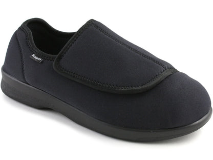 Propet Cush'N Foot Men's Stretchable Shoes are super adjustable for a customized fit with an extra large hook-and-loop strap and removable insole. The upper is stretchable to accommodate swollen feet, hammertoes or bunions, and is the perfect nighttime comfort slipper or post-op shoe. These men's stretchable shoes for sale feature a closure at the instep for easy entry and a snug fit. The terry cloth insole is cushioned and removable to accommodate custom orthotics or diabetic insoles. The PU outsole is lightweight and durable for indoor/outdoor and longer wear. Propet Cush'N Foot Men's Stretchable Shoes keep feet comfortable when you need it most with an optimal fit.