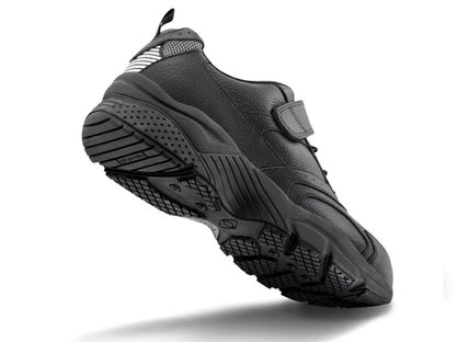 The Apex A6000M - Men's Athletic Shoe is a high quality stability shoe that is built to naturally support your foot and provide a natural gait. The hook and loop strap is adjustable which allows you to get the amount of support you deem comfortable. The carboplast footbridge provides a sturdy footing and the shoe provides reliable traction. The adjustable hook and loop strap gives you custom comfort.- Adjustable hook and loop strap