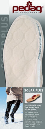 The Pedag Viva Winter arch support insole for cold feet offers a variety of orthopedic features that will not only add longitudinal and latitudinal arch support, but will keep feet warm with its 3-layer Thermo-Active design. These three layers consist of pure wool, insulated foam, and an aluminum reflector - all layers are designed to keep the cold out and the warmth in making it ideal insole for winter shoes and boots. Symptoms of splay foot can be relieved with the help of the Metatarsal pad and since this insole has an anatomical shape, strain will be taken off the arch and ball of foot area. The heel pad is shock absorbing and cushioning to ease pressure and impact to the heel. The Pedag Viva Winter insole is APMA (American Podiatric Medical Association) accepted and recommended for those seeking to keep feet warm during wet and cold weather and at the same time gain comfortable arch support.