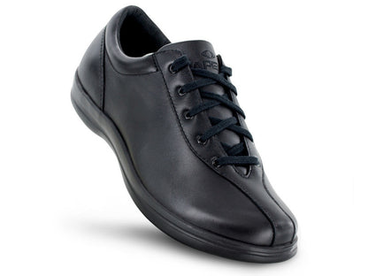 The new Apex Liv in our latest fall arrival collection is year-round footwear! This pair of shoes offers a sleek glossy leather exterior that makes it a classic piece to add into your footwear collection. Tough and enduring, this pair of shoes offers a reliable longevity to enjoy.Apex Liv is a rather neutral pair of shoes which is perfect for casual, outdoor activities. These shoes offer a plethora of exceptional features, exclusively designed to suit your comfort levels. The Apex Liv offers an arch support feature that is essential for light and comfortable maneuverability as it reduces the pressure generated by the lower-body, allowing you to enjoy comfort throughout the day. The comfort levels are further amplified by the contoured footbed feature which adjusts to the shape of your foot's sole to offer sufficient cushioning.In addition, this pair of shoes offers an extra deep, rounded toe box to prevent toe nail damage or swelling. In addition, the deep toe box offers plenty of toe wiggling room to prevent numbness. The leather exterior is lined with soft uppers to prevent skin damage caused by abrasion. In addition, this pair of shoes offers a cushioned, heel counter that supports the arch and the in-step regions of the feet, minimizing lower-body pressure and preventing over-pronation. In addition, this pair of shoes offers a removable footbed which accommodates custom orthotics. This pair of shoes provides the wearer with a flexible outsole for a reliable, slip-resistant traction.The new Apex Liv features the following:- Arch support