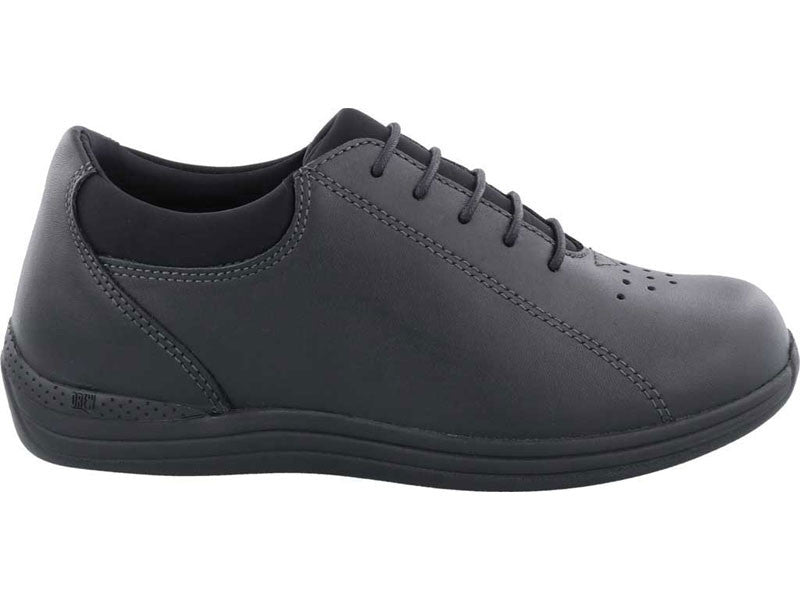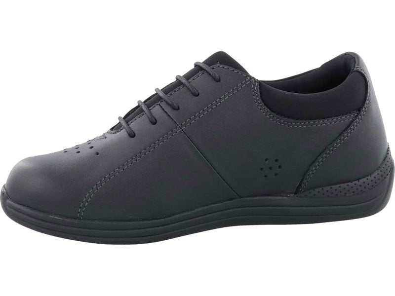 Drew Tulip Women's Shoe is the ideal everyday shoe that you can wear everywhere and know that you will be comfortable. Full grain leather uppers sport perforation at the toe box for excellent breathability. Stretchable lining and soft, foam-padded tongues and collars are extremely gentle for sensitive feet, to provide ultimate soothing and therapeutic capabilities. This women's orthopedic shoe has a tempered steel shank and extended medial heel stabilizer for extra support. A wide shank and forefoot area make this style great for women with bunions or minor foot problems. Tulip is approved for use as a diabetic shoe, due to its dual removable insoles and various width choices. This Drew shoe features the Plus Fitting System® to allow double depth for custom orthotics or arch support insoles. Drew Women's Shoe Tulip is as soothing as rose petals to the skin.- Full grain leather upper