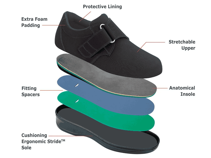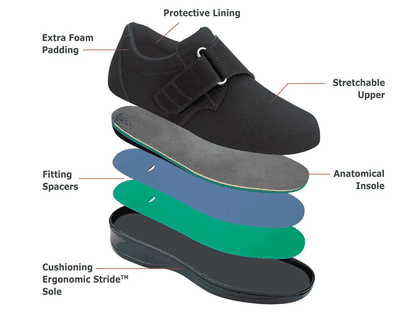 Designed for People Who Need Extra Protection, Without Compromising Style. These Stretchable Shoes from Orthofeet have substantial elasticity of the uppers providing a comfortable loose fit in the forefoot, and allowing the shoe to stretch and conform to the contours of the foot, accommodating common foot conditions such as bunions and swelling and eliminating pressure on the foot. This can help with poor circulation and overall foot health. Enjoy the all day comfort you deserve with this high quality Orthofeet shoe.- Shoes have a plastic heel counter that is heat moldable to help snug up the heel. This is a simple fix but needs to be done by a shoe cobbler.