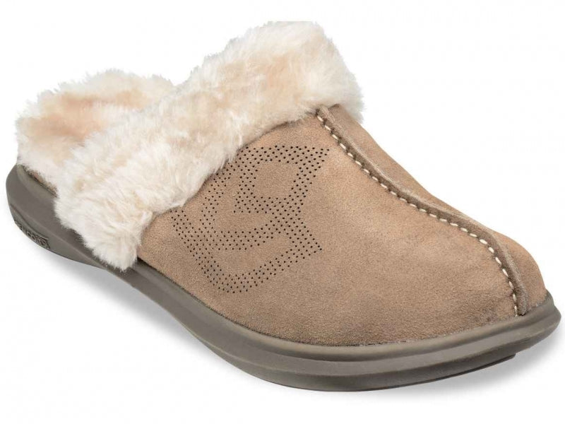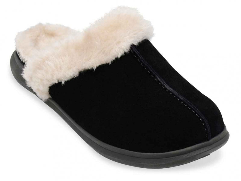 Spenco Supreme Slide women's slippers perfectly combine a chic look with supportive and comfortable features. The upper consists of soft, suede material and the lining is made up of luxurious faux shearling for exceptional comfort. The footbed is designed with TOTAL SUPPORT® contour, which means you'll gain an anatomically shaped footbed with arch support, a heel cup, cushioning in the forefoot, and a metatarsal dome (for a good stretch to relieve forefoot joint pressure). This women's slipper also has a durable, non-marking outsole with added traction to keep you steady on various surfaces. Stay comfortable at home and experience support and stability that is second to none by adding the Spenco Supreme Slide women's slippers to your shoe collection.