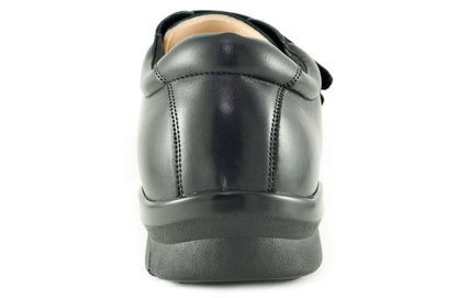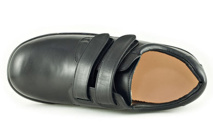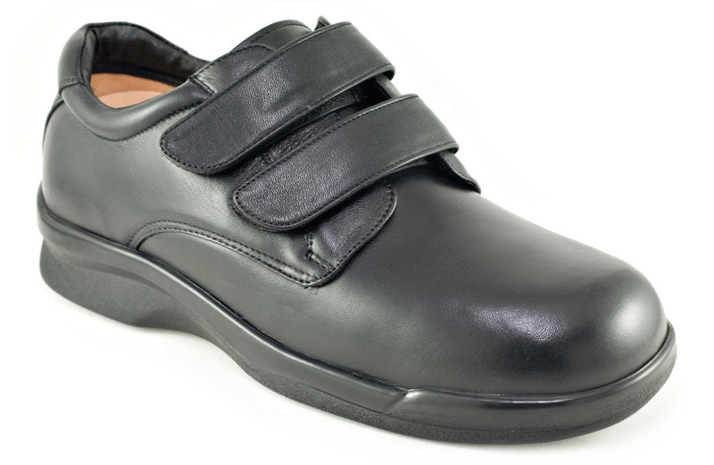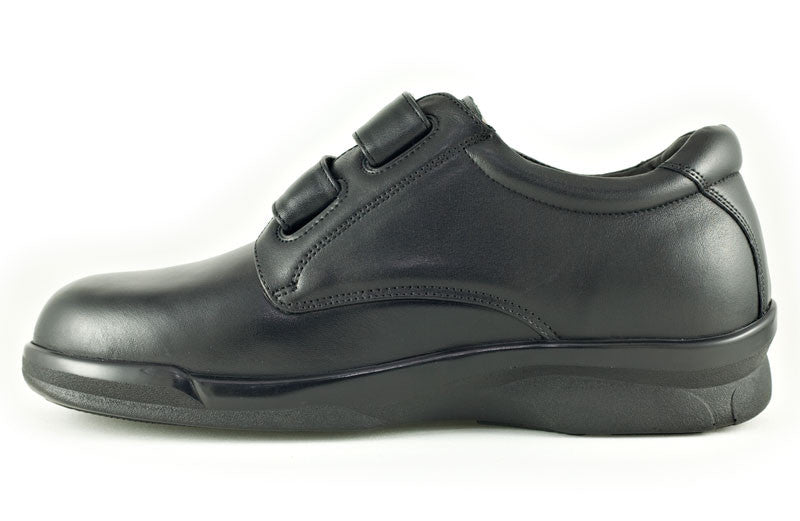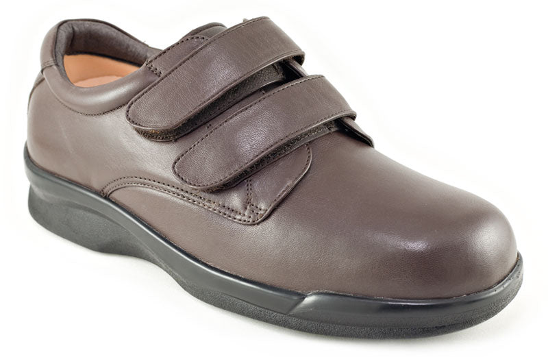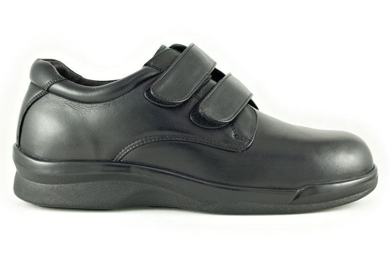 The Apex Men's Ambulator Double Strap shoe presents handsome characteristics and sophisticated style making it perfect for those seeking a good looking shoe with orthopedic features. Genuine full grain leather is used in the upper while two hook and loop straps allow flexible fitting and easier wear. Comfort is easily enhanced because of the Plastazote lining that molds to the foot for a customized fit. The shoe offers a 1/2" removable depth insole to accommodate custom orthotics and diabetic insoles, plus it's made with AnitShox Gel material that not only reduces the weight of the insole but absorbs shock that can lead to heel pain, ankle pain, and back pain. The Ambulator Double Strap orthopedic shoe also comes with a lightweight polyurethane rocker sole with added traction to help resist slippage as well as provide stability. The Ambulator collection is internationally recognized by foot health professionals for foot problems such as arthritis and diabetes; and as a biomechanically designed shoe one will feel less stress at the foot areas that are most susceptible to pain.