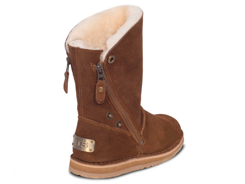 The Cloud Nine Sheepskin Trixie Women's Boots are unlike other boots on the market because they can be worn with the sides up or down due to the upper's unique design that incorporates cowhide suede and side zippers. The interior lining is made with 100% sheepskin material, which means you'll experience instant comfort because sheepskin is both breathable and thermostatic - your feet will stay dry and at a comfortable temperature whether you're in a hot or cold environment. The sole is made with durable EVA for long-lasting, indoor/outdoor wear. Upgrade your boot collection with the Cloud Nine Sheepskin Trixie Women's Boot so that you can gain foot comfort and cute style.- Upper is made with cowhide suede