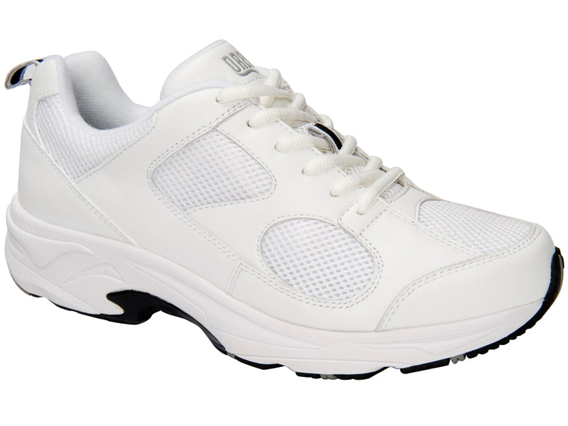 The Drew Lightning II Men's Athletic Walking Shoe offers unsurpassed foot and ankle support with Plus Fitting System (twice) removable depth for custom orthotics. The Lightning II features a breathable leather/mesh upper with lace-up closure. The soft fabric lining and foam-padded tongue and collar keep feet comfortable. The insole is removable and lined with Drilex and AEGIS Microbe Shield to keep active feet cool, dry, and odor free. This Drew shoe is also recommended for treating foot problems such as a high arch, flat feet, Metatarsalgia (ball-of-foot pain), plantar fasciitis (heel pain), bunions, hammertoes, and arthritis. TPU and tempered steel shank offer stability with a rocker bottom to propel the foot forward. This shoe is designed with an EVA midsole and lightweight rubber outsole. HCPCS Code A5500 for a diabetic shoe, the Drew Lightning II Men's Athletic Walking Shoe offers the ultimate in comfort and support, so you can move (almost) as quick as lightning.Features