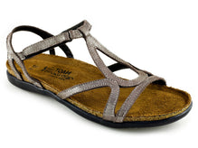 The Naot Dorith Women's Slide Sandal has a gladiator design upper with a hook and loop strap, as well as a backstrap for added stability and support. The footbed is constructed of anatomic corka nd latex and wrapped in suede. This sandal has a great fit, as it molds to the foot with wear. The footbed is designed with hallux support to keep the foot in place, and a deep heel indentation helps the body's balance and maintains the natural shpae of the pad of the heel that protects the heel bone. As part of the Elegant Flat Collection, Naot Dorith Women's Slide Sandal has a .75" TPR sole.- Gladiator- inspired design