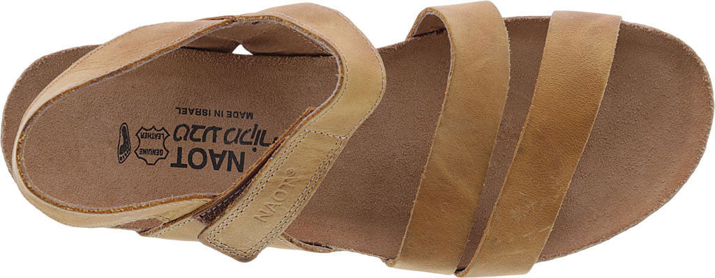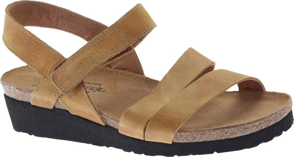 Naot women's sandal Kayla is a classy, top of the line women's orthopedic sandal with an adjustable ankle strap. Its Italian leather upper is designed to allow maximum breathability, keeping your foot feeling fresh. This hand made sandal creates the perfect blend of form and function, to ensure the best high-styled walking pleasure- A high-quality rubber, polyurethane sole which retains flexibility and resists erosion.
