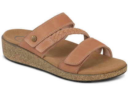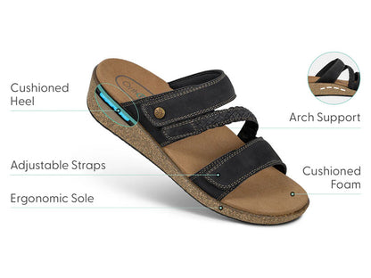 The Orthofeet Carrie Women's Sandal offers a blend of style and therapeutic comfort, perfect for those seeking relief from foot pain. Featuring anatomical arch support and an ergonomic sole, it helps alleviate discomfort from plantar fasciitis, flat feet, and other foot issues. The cushioned footbed and lightweight design provide stability and ease with each step, while adjustable straps allow for a perfect fit. With a soft, seamless lining, this sandal is ideal for sensitive feet, offering breathable and lightweight wear for any casual occasion.